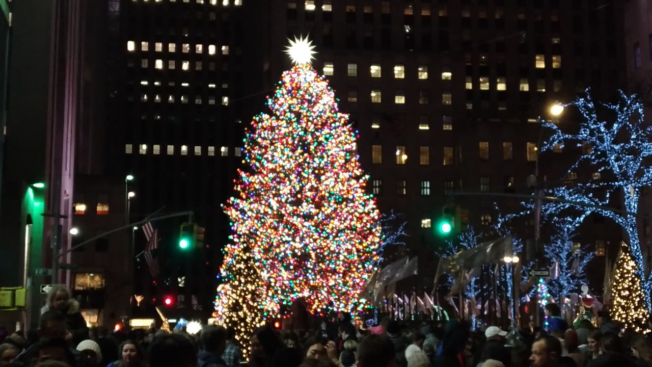 食後に、有名なロックフェラーセンターのクリスマスツリーを見に行きました。私自身は会社から帰るときに毎日のように見ていますが、家族は初めてです。