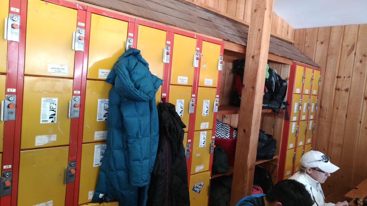 着いたらもう12時頃になっていましたが、とりあえずスキーの準備をします。事前に買っておいた割引券は、窓口でリフト券に交換します。荷物は山の下部のベースにある「Discovery Lodge」に置いておきます。