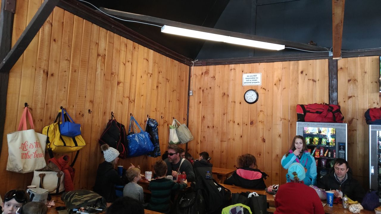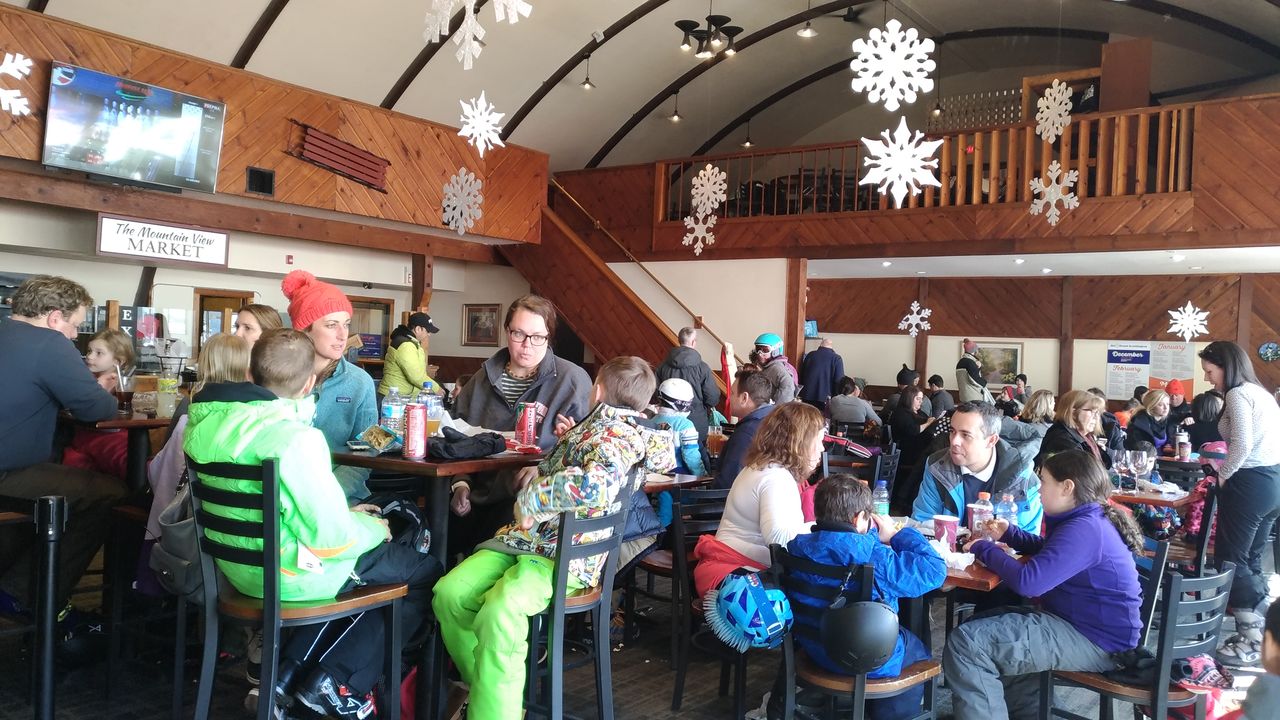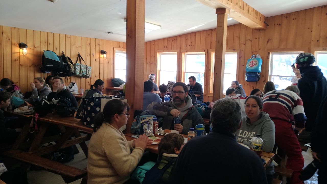 ひと滑りした後で、昼食にしました。奥さんが作ってくれば焼きそばを持ってきていたので、Discovery Lodgeで食べることにしましたが、このロッジは大混雑でした。
