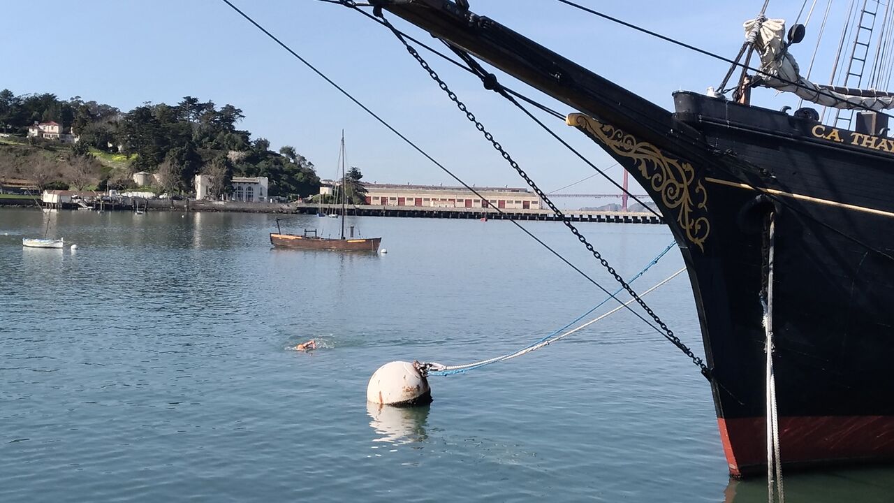 橋の上から見えるアルカトラズ島や: