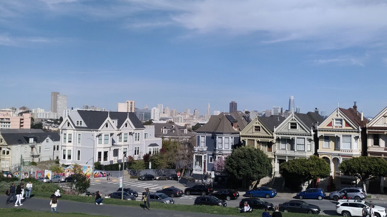 Painted Ladiesは評判通り、かわいらしい家々でした。どんな人たちが住んでいるんでしょうねえ(少なくとも何件かは住まわれているようでした)。