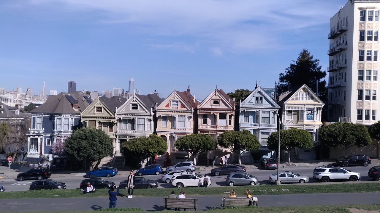 Square Parkに隣接するPainted Ladiesになりました。ビクトリア様式のかわいらしい家が立ち並んで、絵になる場所として有名なスポットです(というか、子供がマクドナルドで昼食にしたいと言ったため、マクドナルドを探して、その近くにあったPainted Ladiesにも行くことにしました)。
